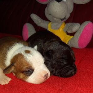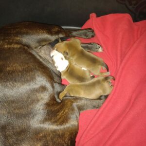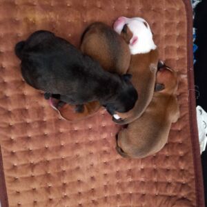 S príhodným menom otca Ch. Old Irish Whiskey Top Banana ( je to prvý vrh tohto syna holandského otca na Sk, inak tento psík bol členom CZ repre timu na holandskej tímovej súťaži, zároveň je poľovne upotrebiteľným psom ) a zvláštnym menom matky Ch. Dar Crazy magic dokvitli na svet traja psíkovi a jedna sučka, ktorých meno v PP bude začínať na „U“. V tejto chvíli je zadaná červená sučka, bielo červený a červený psík sú predmetom predbežných úvah a s určitosťou je voľný čierny psík so žíhaním ( ako takmer vždy je paradoxom, že podľa môjho nahodilého odhadu sa javí byt v tejto chvíli najlepšie formovaný, čo sa týka písaného štandardu plemena SBT ). Takže taktohľa