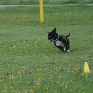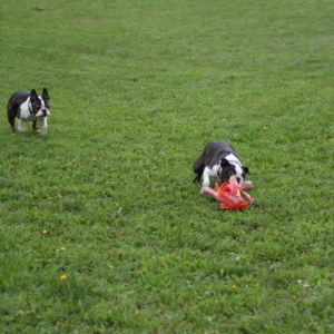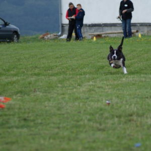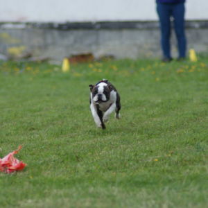 Tentoraz sme sa rozhodli spojiť svoje sily s bostonkármi a behali sme spolu s nimi a že im to išlo výborne, dokazuje fakt, že víťaz týchto tréningových pretekov bol práve bostonský teriér Nevicata´s Grace Kelly, musím povedať, že bežala skvele, zbalená do guličky s jasným sústredením len na strapec, výborné dva behy !!! Na druhom mieste sa s rovnakým súčtom bodov umiestnili náš Bastien ( zopakoval druhé miesto z predchádzajúceho tréningu ) a naša Brigitka, tam som predpokladal, že by jej to celkom mohlo ísť, je to stafík – behavec, silové veci príliš rada nemá, ale lietať po svete jej ide :), krásne behal tiež nováčik Edgar Carlos Dream Staff Bohemia ( zhodou okolností vnuk Bastienovej sestry Buffy, takže behali príbuzní o dve generácie posunutí 🙂 ), nakoniec obsadil 3. miesto.