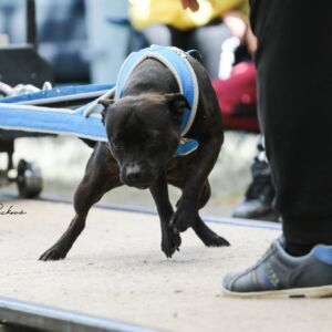 …. takže užil som si to naplno. Ešte som mal česť handlovať Jima – Staffyho – brata mojej Jarky, ktorý si vypestoval podivnú odolnosť voči výzvam svojho človeka potiahnuť vôbec niečo na dráhe, takže v prvej súťaži EPF dal, že nič, som mnou sa mu podarilo v ČMP potiahnuť 735 kg ( index 42,85 ), čím prekonal výkonom aj svoju sestru a mne urobil radosť, Staffy má schopnosť urobiť slušný výkon, len tá hlava ….. Je mi ľúto, že v súťažiach „tejto ligy“ chodí tak málo Slovákov, medzi pitmi nikto, ak sa nemýlim, ast z Elite Amstaff v novice zatiaľ a sbt ja a Bodnárovci. Škoda, snáď na budúce …. dve kvalifikácie na Majstrovstvá Európy EPF a EWPASS máme