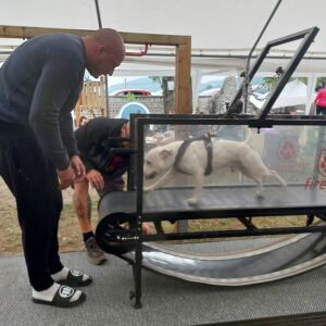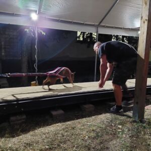 .Ďalej trocha štatistiky – Crazy Days 2023 sa zúčastnilo 43 súk a psov v základnom rozdelení na kategórie SBT/BT ( 16 ), AST ( 9 ), APBT ( 14 ) a FUN ( 4 ), súťažilo sa v štyroch disciplínach weight pulling – 26 psov ( sbt – 13, AST – 6, APBT – 5, FUN – 2 ), weight pull sprint – 23 psov ( sbt – 8, AST – 4, APBT – 9, FUN – 2 ), a-frame – 21 psov ( sbt – 9, AST – 2, APBT – 6, FUN – 4 ), treadmill – 27 psov ( sbt – 9, AST – 7, APBT – 7, FUN – 4 ), prídavkom bol weight pulling podľa váhových kategórií, kde súťažilo 18 psov ( sbt – 10, AST – 4, APBT – 3, FUN – 1 ). Podľa týchto čísel rozmenených na drobné pekne vidno, že napriek celkovému veľmi peknému počtu psov pri type a historickom pohľade späť, sa akcia nemení a zostáva svojím rozsahom stále malou, intímnou a charakterom takmer rodinnou akciou. Ale nie celkom …. oproti starším ročníkom sa mení štruktúra súťažiacich psov a ich majiteľov, tým že súťaží už nie jedno plemeno, ale oveľa viac ( vďaka FUN