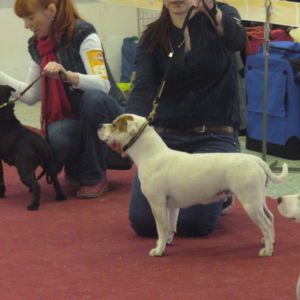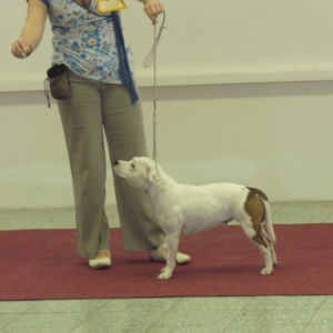 Posudok : jemne modelovaná hlava, ešte nehotový front, stredne silné kosti, dobre zauhlená, zle predvádzaná v pohybe.