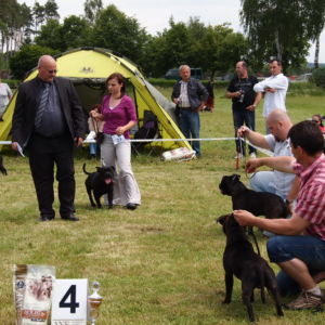 Treba vidieť aj veľké výstavy a vyskúšať si porovnanie vo väčšej konkurencii, výstavy českého klubu sú naozaj veľké a konkurecia sa tam schádza spravidla veľmi zaujímavá a keď sa k tomu pridá zaujímavý rozhodca ( tento rok to boli anglickí rozhodcovia a chovatelia Kevin Jones a Mark Davies ), stojí za to prísť ! Tento rok sa na výstave stretlo 218 psov a fen, v triede mladých bolo 28 psov a 38 súk, slušná konkurencia, na túto výstavu bolo prihlásených 5 odchovov našej CHS, ale nakoniec sa jej zúčastnil len Lothar v triede šteniat a Jax v triede mladých, Jetta a Java sa začali hárať a keďže na túto výstavu nemajú do konkurencie prístup háravé feny ( posudzujú sa na konci kvôli získaniu chovnosti ), neprišli, Lotta pár dní pred výstavou ochorela, takže z toho bola pánska jazda… A vcelku sa darilo, Lothar skončil Veľmi nádejný 4 a Jaxovi sa podarilo postúpiť do užšieho výberu 11 psov, z ktorých rozhodca vyberal poradovú štvorku, Jax sa do nej nedostal a odišiel z kruhu s hodnotením výborný.