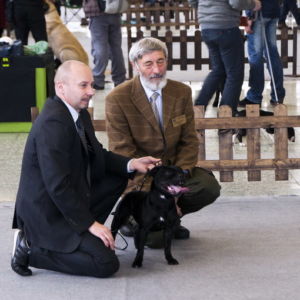 Medzinárodná výstava psov Nitra, 11.1.2015 – rozhodca : František Polehňa, CZ – na tejto výstave boli štyri naše nádeje.Stafíci boli znova tretím najpočetnejším plemenom na výstave, kvalita psov v jednotlivých triedach sa oproti včerajšku neznížila, napriek tomu sme zo včerajších pozícií takmer neustúpili :). Nestor znova v triede strednej zvíťazil, ale tentoraz k tomu pridal aj svoj druhý CACIB a nakoniec aj BOB !!!! Paris v mladých pokračovala vo včerajších stopách Rity a tiež obsadila druhé miesto s hodnotením Výborná, Oxy sa podarilo obhájiť prvé miesto v triede strednej, len Chiara v otvorenej skončila ako Výborná 2, Res.CAC za Bully for you Top Banana ( nakoniec BOS tejto výstavy ), len jeden CAC ju delí od šampióna krásy SR. Na túto výstavu bolo prihlásených 30 stafíkov, z toho 8 slovenských odchovov, 4 z Crazy Magic, 3 z Rascal Bull, 1 z Jayo Staff, 20 českých, 1 anglický a 1 maďarský odchov. Najväčší šok pre mňa prišiel v záverenom kruhu, kde sa Nestor po krásnom predvedení dostal do užšieho šesťčlenného výberu o najlepšieho jedinca III. FCI skupiny ( teriére ), ale keďže do tohto výberu sa dostal aj víťaz plemena Americký stafordšírsky teriér a navyše p. rozhodca Erwin Deutscher z Rakúska posudzoval na týchto dvoch výstavách maltezákov, čivavy, pudlov, … predpokladal som, že ďalej Nestor nemá šancu ( už aj užší výber bola veľkááááááá frajerina ) a ďalej pôjdu o niečo menšie, chlpatšie a ľúbivejšie rasy teriérov. A keď hneď tretie miesto obsadil amstaf, bol som zmierený s osudom a vďaka tomu som nestihol zareagovať a odfotiť Nestora na druhom mieste !!!!!! Super výsledok !!!!! Zatiaľ najväčší výstavný úspech odchovu z našej chovnej stanice, treba však povedať, že leví podiel na tomto výsledku má moja manželka, ktorá s Nestorom urobila v handlovaní za pol roka kus roboty, kto videl jeho výstavné začiatky a jeho poslušnosť, vie o čom píšem :).
