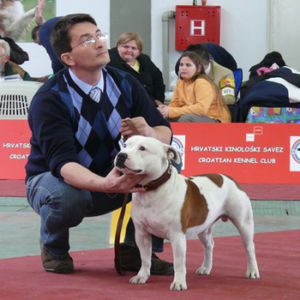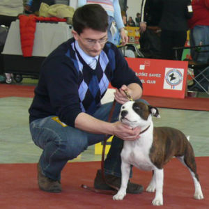 Posudok : Dobre stavaný trup a horná línia, výborný hrudník, pekná hlava, v kruhu by mal pôsobiť veselšie, chýba mu jeden zub ( úraz z októbra preukázaný rontgenom ), ale skus je v poriadku, svetlejšie oči.