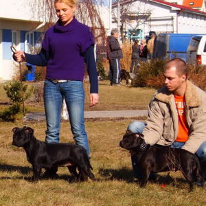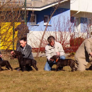 05.03.2012:: Špeciálna výstava SKCHTaF Viničné 2012 …. Pre našu chovnú stanicu veľmi príjemná výstava, všetkých 6 našich odchovov, ktoré sa tejto výstavy zúčastnilo, získalo veľmi pekné ohodnotenie. Trieda mladých psov vyšla super, Jax krásne chodil a po dlhom rozhodovaní p. rozhodkyne A. Cwiecekovej hlavne vďaka pohybu zvíťazil v konkurencii ďalších štyroch psov a získal V1, Víťaz triedy mladých, Ice bol v príliš blahobytnej kondícii, takže odišiel z kruhu s hodnotením Veľmi dobrý. Trieda mladých feniek patrila takmer celá našej chovnej stanici, minimálne čo sa počtov týka, veď z päťčlennej konkurencie boli štyri fenky naše 🙂 a nakoniec im patrili aj prvé štyri miesta s hodnotením Výborný. Prvé miesto a Víťaz triedy mladých získala Janis, Výborná 2 bola Jasmin, Výborná 3 je Isha a Výborná 4 Java. Veľmi pekne sa chcem poďakovať ich majiteľom, krásne sa svojím šteniatkam venujú ( drobci z vrhu J majú stále len 9 mesiacov a I sú len o 1,5 mesiaca staršie ) a je to nich vidieť, ste šikovní, ĎAKUJEM !!!!! Opätovne sa krásne predviedol Bastienov syn Gusto Svob-Mil, získal V1, CC v triede strednej. Super !!!